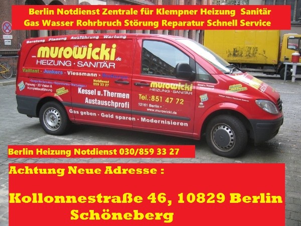 Berlin Notdienst Heizung Sanitär Klempner Dipl.-Ing. Murowicki 24 H Service Tag + Nacht Tel: 030/850 33 27